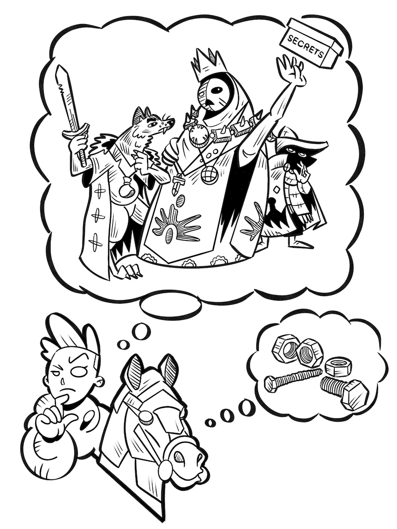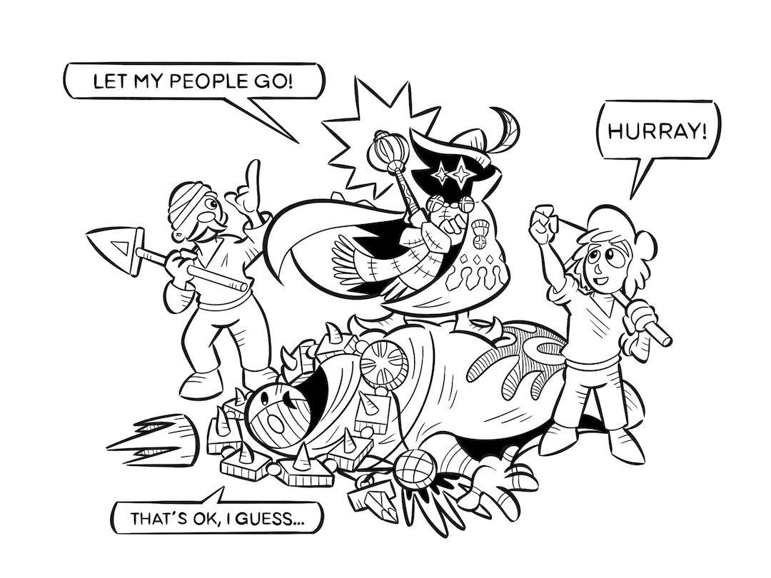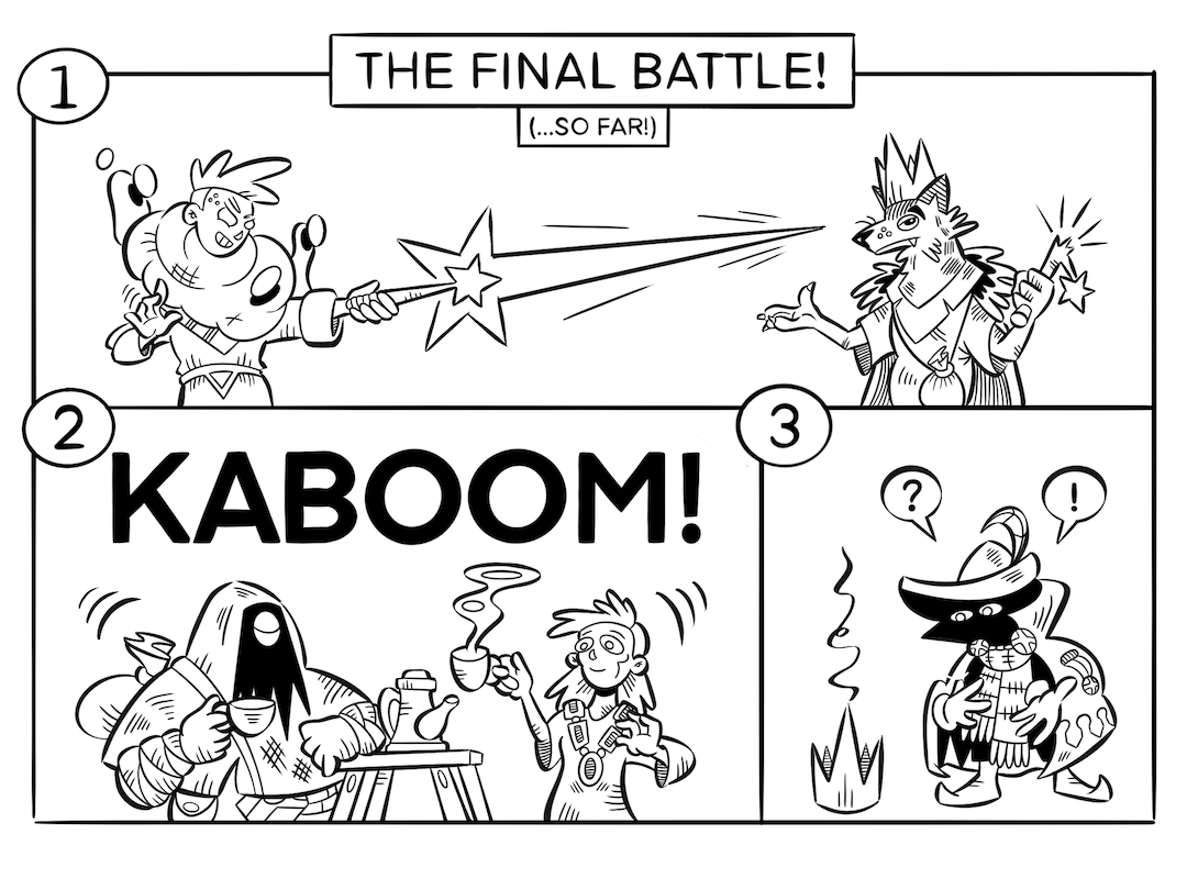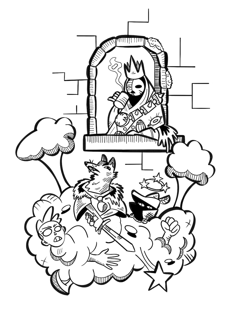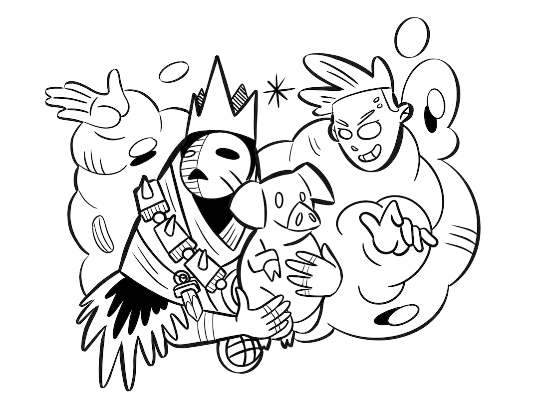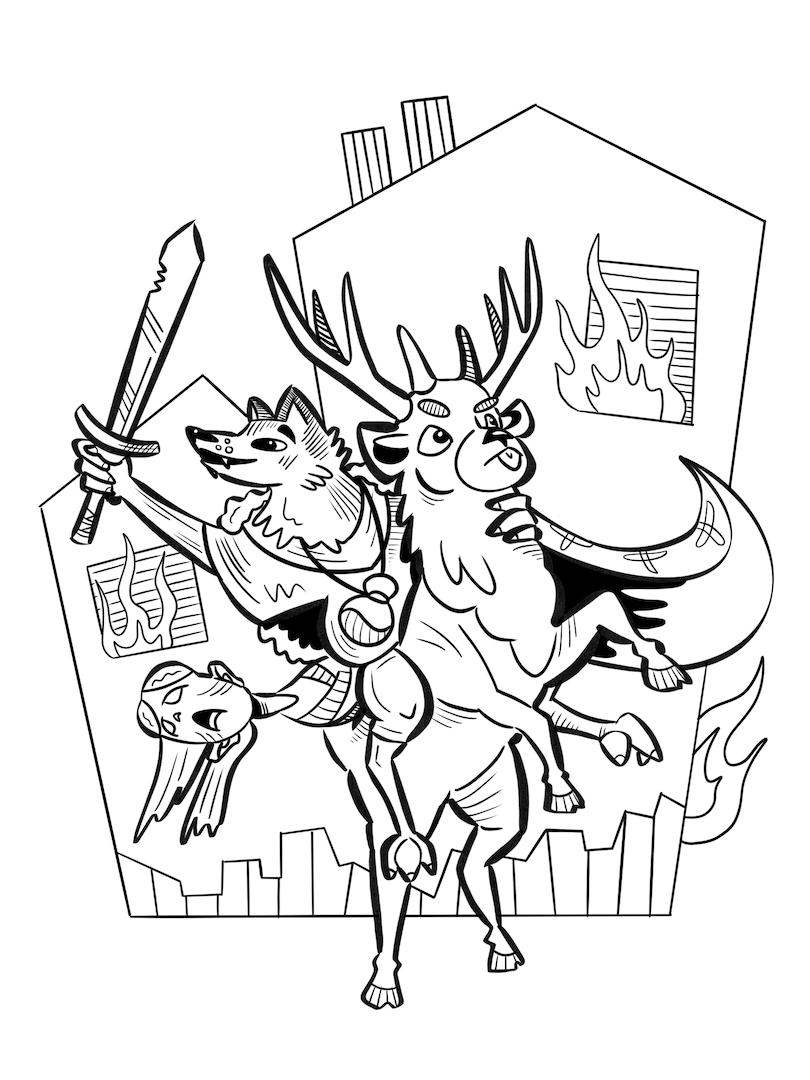 Hintergrund: Oath ist ein Brettspiel aus dem Jahr 2021. Beendete Spielerunden können dort in einem Tagebuch verschriftlicht werden. Oder man zeichnet das Abenteuer. Auf Reddit kann man verschiedene coole Zeichnungen finden. Tatsächlich habe Ich das Spiel selbst nie gespielt. Ich habe für eine Spielegruppe gezeichnet, die mir ihre Abenteuer erzählt hat. Die Designs und den Stil habe ich von den Originalbildern von Kyle Ferrin übernommen.