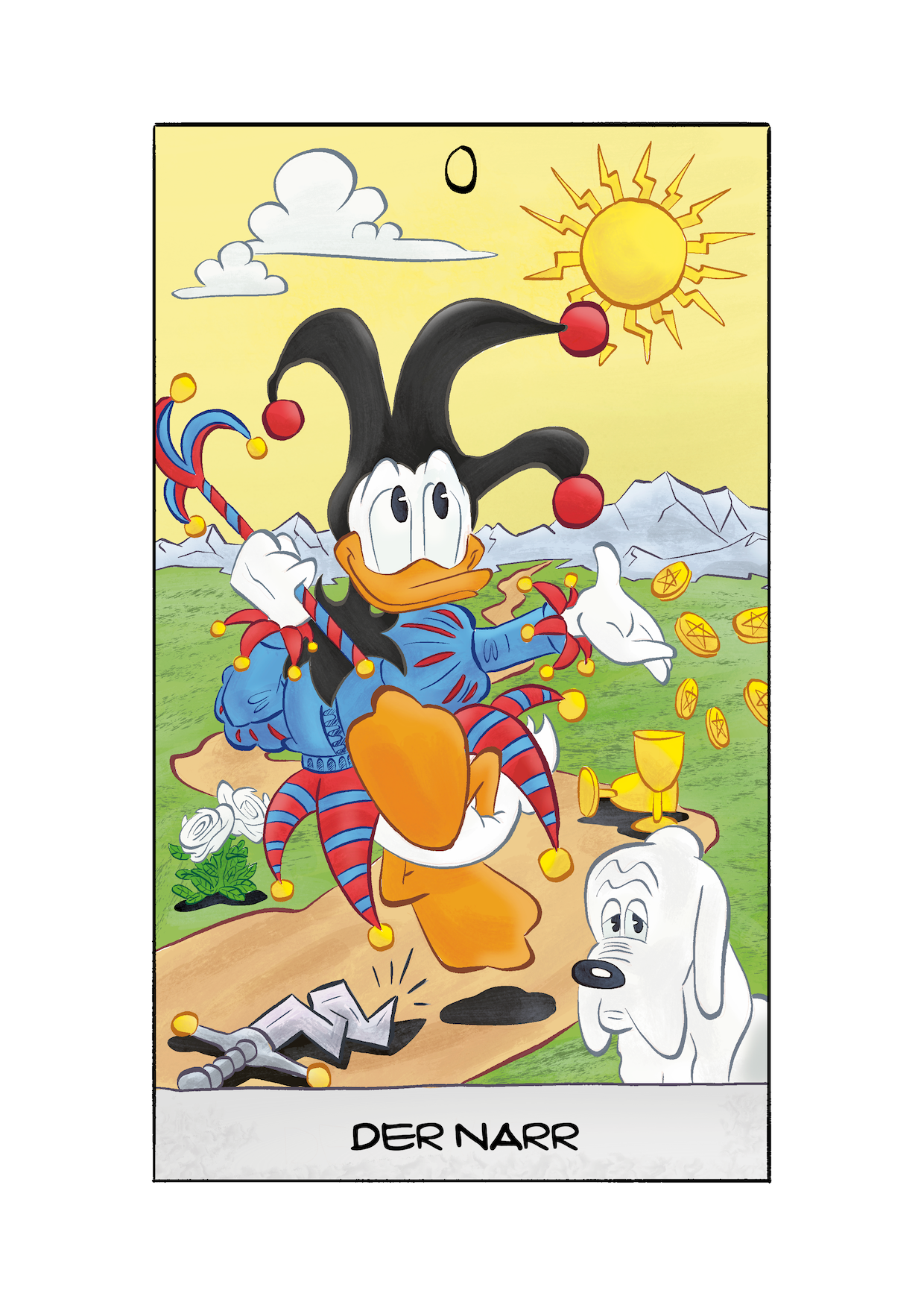 Was ist also besser geeignet als Tarot? Ich versuche die klassische Symbolik mit legendären Designs, Geschichten und Figuren aus Entenhausen zu kombinieren. Viel Spaß beim Kartenlegen!
