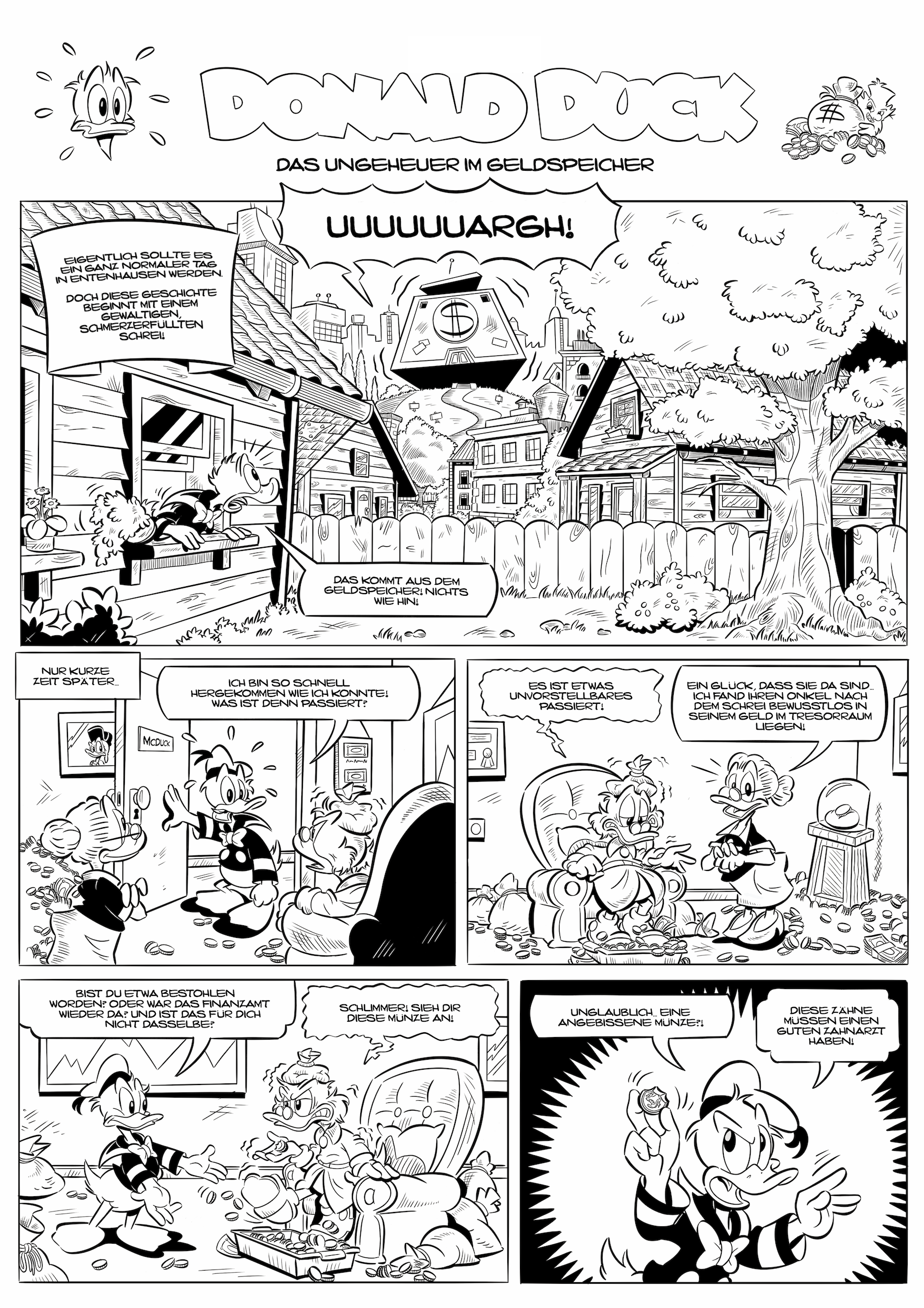 Inhalt: Dagobert entdeckt eine angebissene Münze im Geldspeicher. Gemeinsam mit Donald will er die Ursache herausfinden und entdeckt einen unerwarteten Besuch.