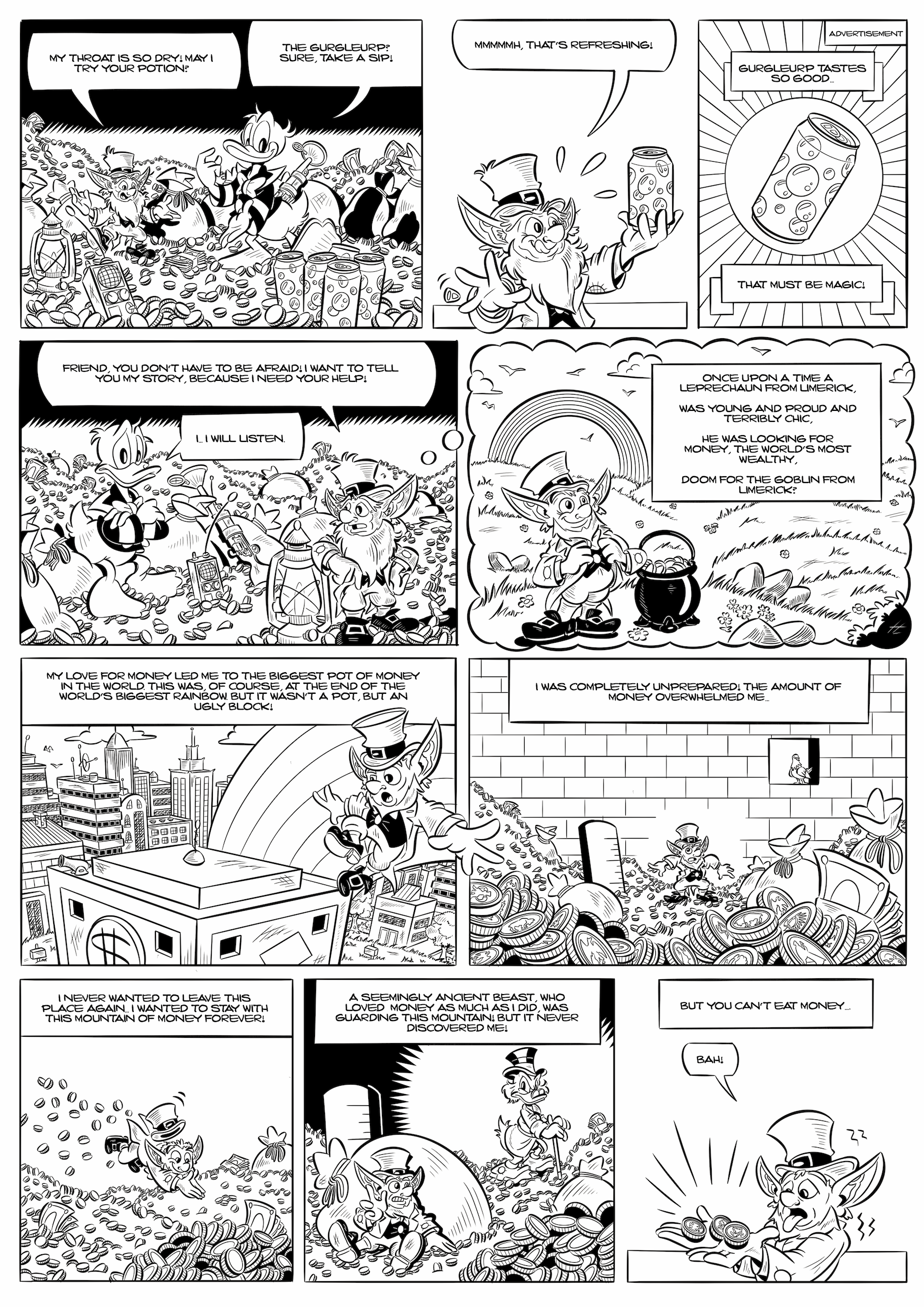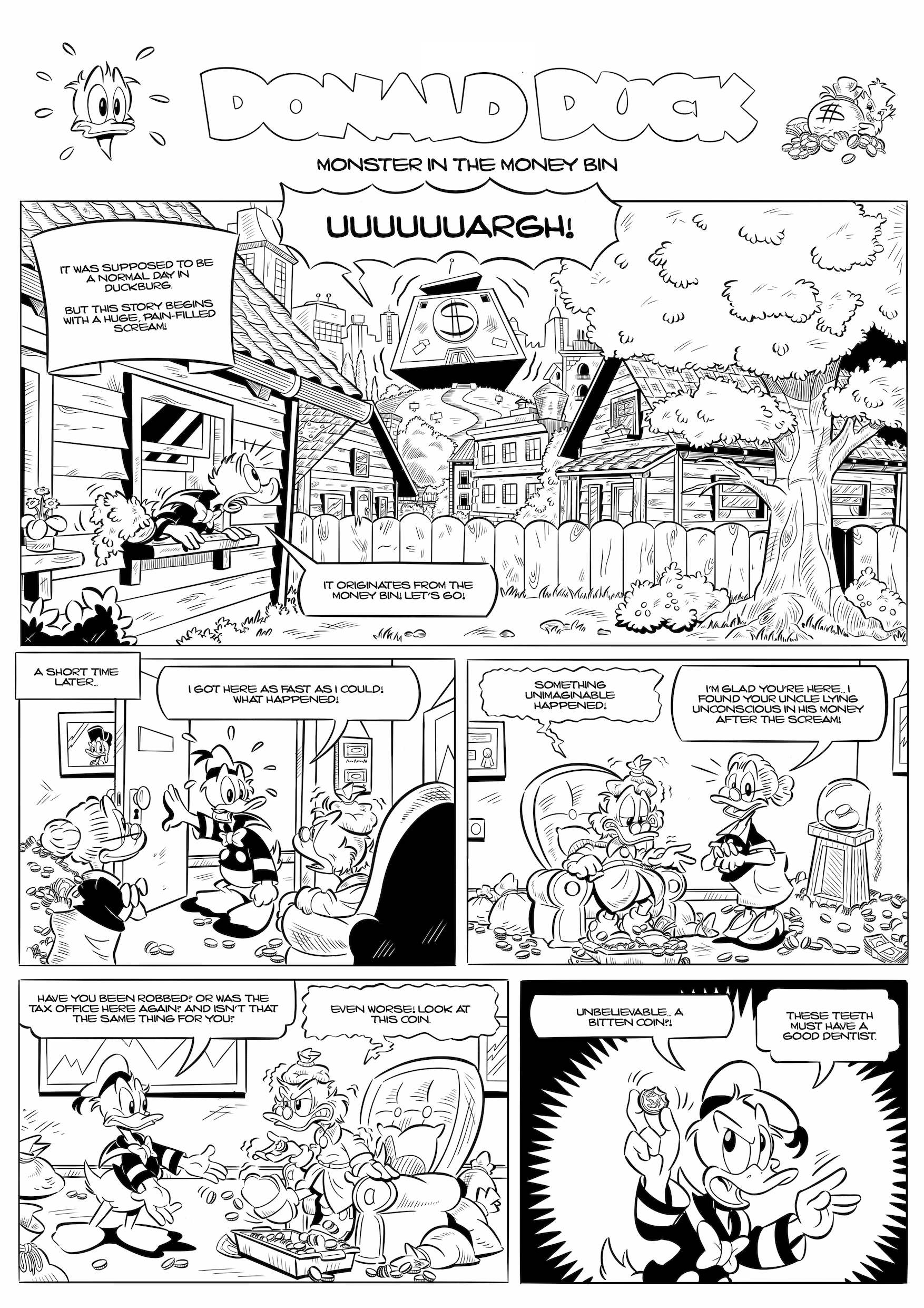 Content: Scrooge discovers a bitten coin in the money bin. Together with Donald, he wants to find out the cause and meets an unexpected visitor.