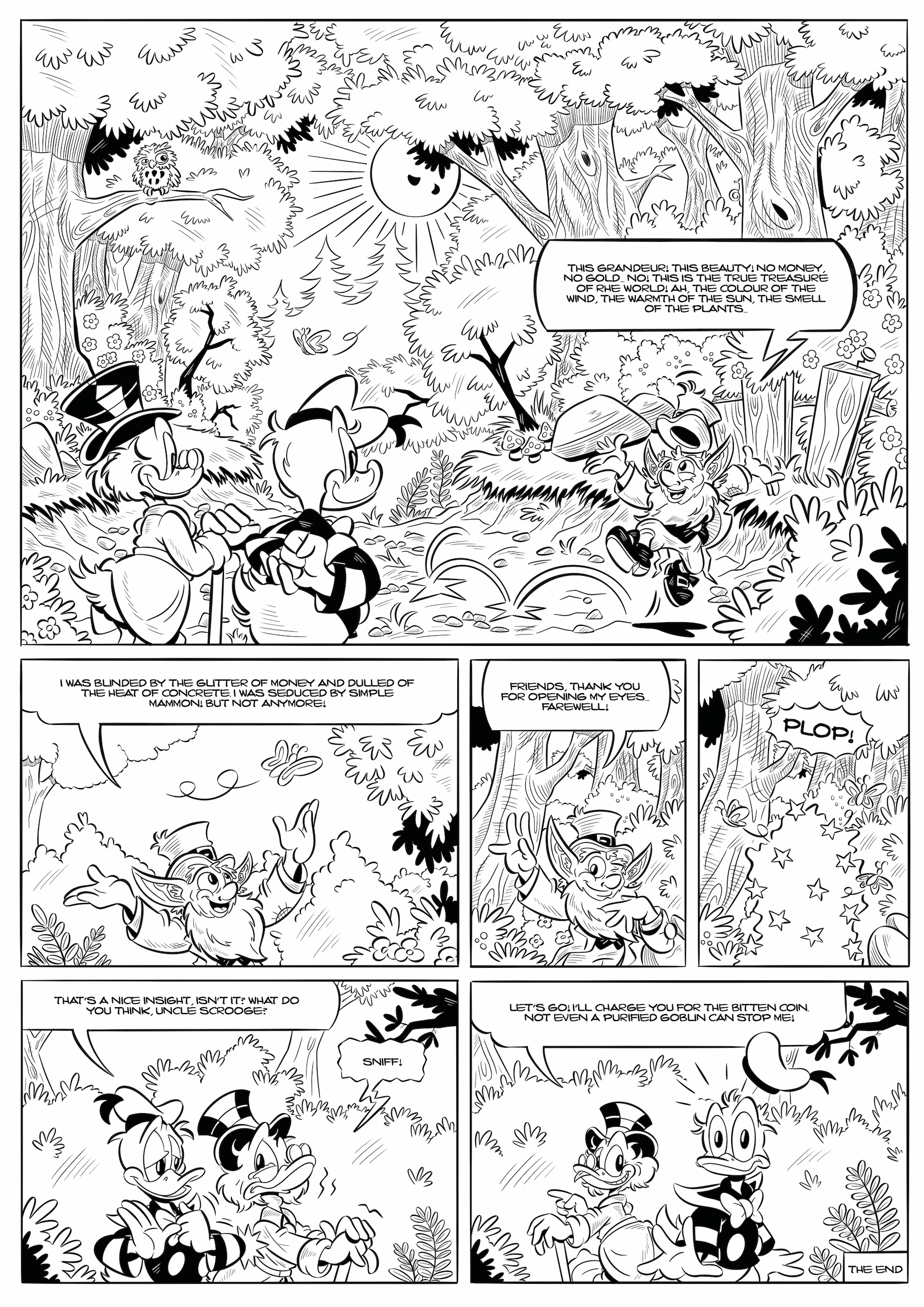 Background: The story was originally written as an unsolicited application to Egmont Ehapa. That’s why I squeezed the story into eight pages. With two or three more pages, the story could have been a bit more atmospheric. There is not much room for development in eight pages, so I focused on a simple message. Unfortunately, after an initial positive response from the publisher, there was no more feedback.
